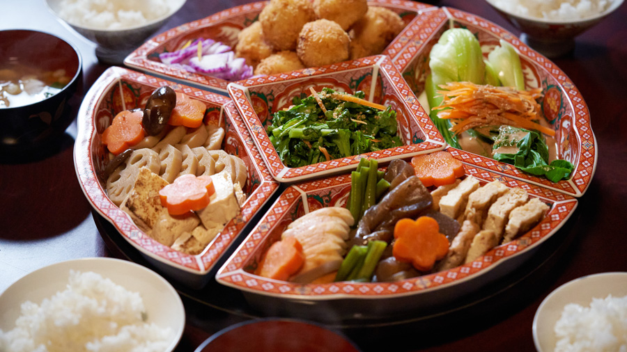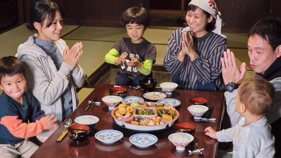 四季折々の能登の食材と、宿の田んぼで収穫されたお米を使用した家庭料理で、団らんの時をお過ごしいただけます。※写真はイメージです。メニューは季節によって変更することがあります。